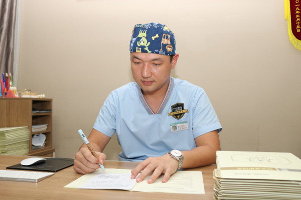 口腔外科涉及患者面部、口咽部、舌、 颌骨、颈部以及颅脑部等区域的生理解剖,每一刀都对医生的知识技能要求非常严苛。田忠奇读研期间,建立了完整的口腔外科医学知识体系,在他看来,种植医师亦如此:"医生是一个不容忍容错率的职业,种植手术时,每一刀要选择什么位置、角度、间隙,都十分讲究,失之毫厘差之千里。"