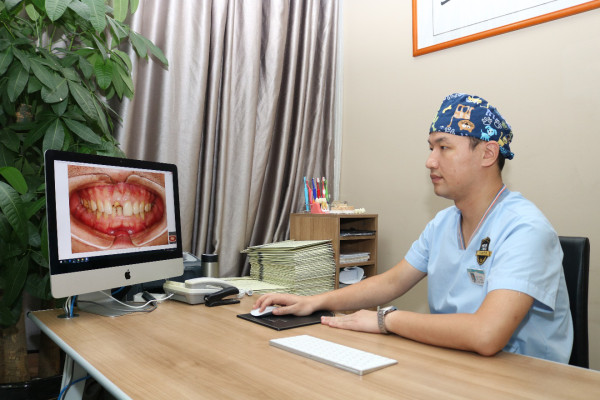 谈及数字化技术,田忠奇忆起了第一次接诊的全口疑难案例,"刚开始接触种植牙时,有位大哥主动找我种牙,他的情况特别复杂,爱抽烟,严重牙周炎,全口牙缺失,由于缺牙太久牙槽骨薄如蛋壳,并且骨高度不够,神经管分布复杂,传统种植简直无从下手。"面对患者的信任,田忠奇深感责任重大,借由数字化设备精确采集患者口腔数据后,田忠奇在计算机上反复模拟,为患者设计了个性化方案,包括种植体植入的位置、角度、深度和数目等,进而利用3D打印定制数字化种植导板,成功完成了种植手术,患者感激不尽,来复诊时还特意送了一副锦旗表示感谢。"医者仁心,对田忠奇而言,这份成就既是压力也是动力,"患者将健康托付于我,我不想辜负这份信任。完成这例疑难种植后,我的内心也更加从容和自信。"