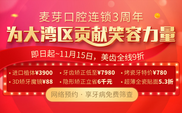 为感谢这三年来新老顾客对麦芽口腔的支持和陪伴,周年庆期间种植、正畸、修复等项目折扣多多,凡是通过网络预约来院的顾客均可享受麦芽周年庆大礼包,另外还有超值的看牙优惠。